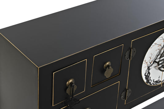 Consola Oriental Negra Círculo Blanco ( Seis Cajones)
