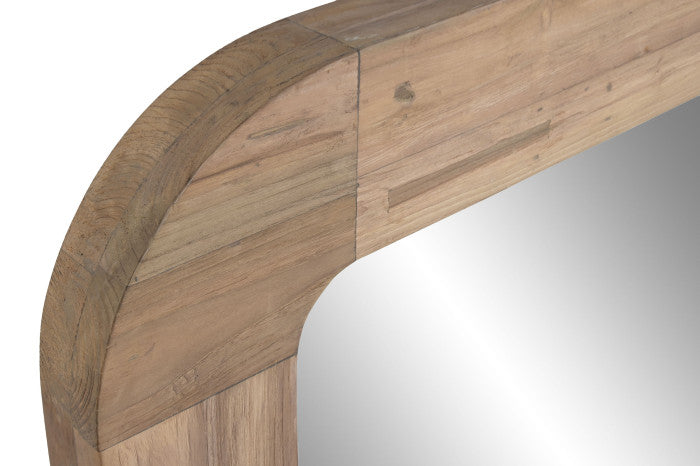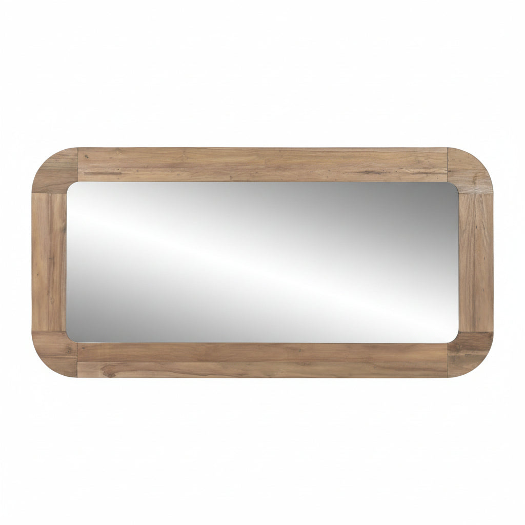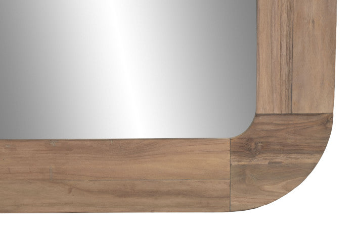Espejo rectangular con esquinas redondeadas realizado en teca reciclada en tono natural.