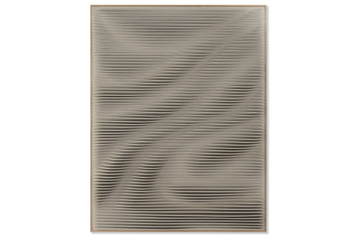 Cuadros en tono beige con ondas y acabado tridimensional. Enmarcado en ton natural.