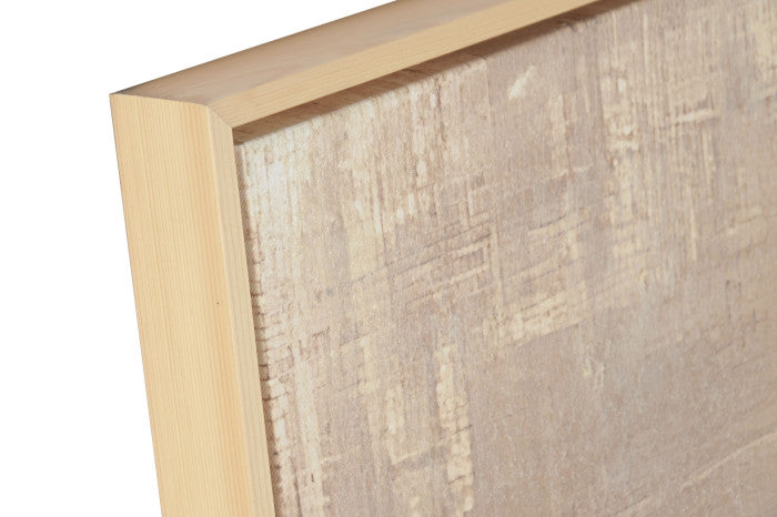 Lienzo abstracto en tonos beige y blanco. Marco de madera color natural.