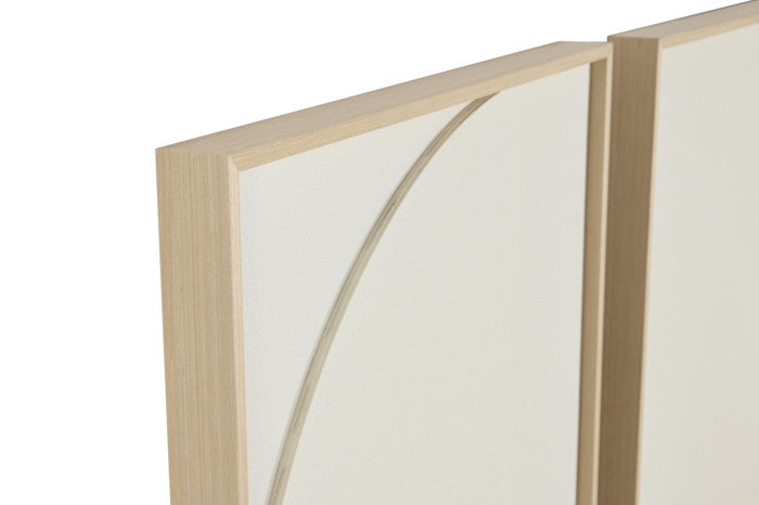 Pareja de lienzos enmarcados abstractos en tono blanco con acabado 3D y enmarcado en tono natural.