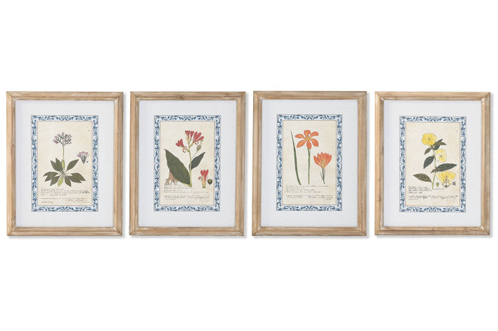 Conjunto de cuadros con detalles de plantas y marco en madera tono natural y cristal.